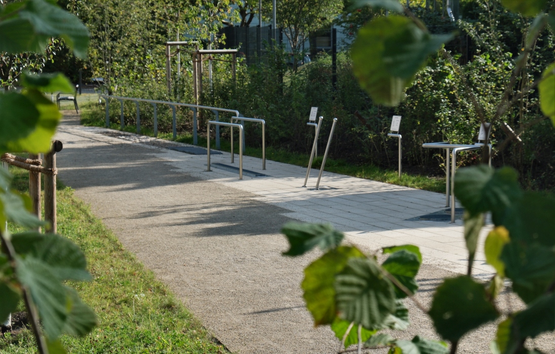 Neben dem Training sind aber auch Orte zum Ausruhen, Beobachten und Zurückziehen wichtig. In kurzen Abständen werden seniorengerechte Sitzplätze angeboten, einzeln und in kleineren Gruppen, in der Sonne und im Schatten, offen und überdacht.