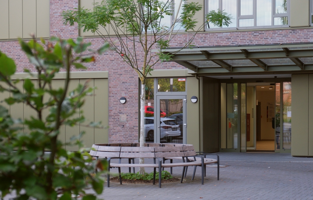 Auf engem Raum – zwischen Klinikum und Einfamilienhaussiedlung – ist ein Ort entstanden, der frisch und vertraut zugleich wirkt.