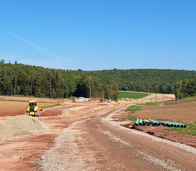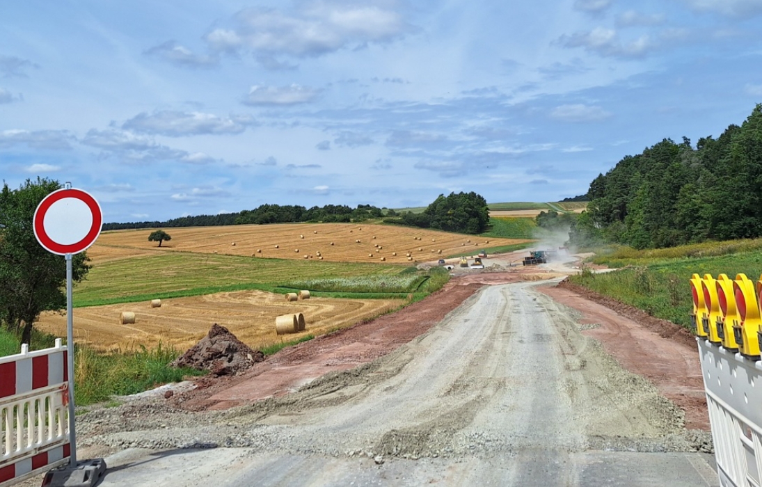 Der Ausbau des Streckenabschnitts der St 2292 nördlich von Frickenhausen wurde in zwei Bauabschnitten umgesetzt. Die vorbereitenden Maßnahmen sowie der Streckenbau wurden im Rahmen einer Umweltbaubegleitung kontrolliert.