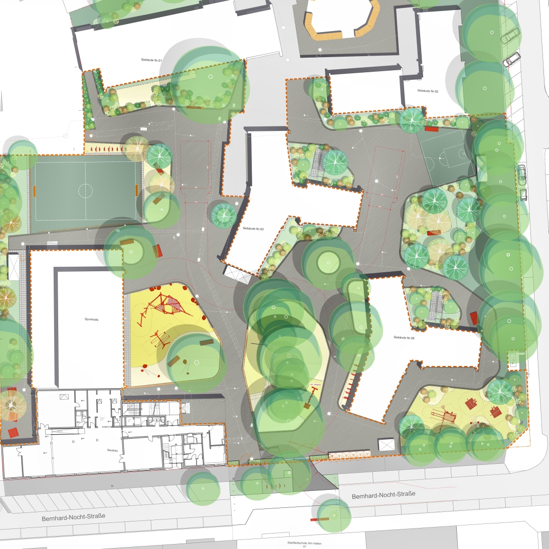 Mitten im urbanen Gefüge von St. Pauli wurde ein in die Jahre gekommener Schulhof unter laufendem Schulbetrieb umfassend neugestaltet. Ziel war es, klimaresiliente, vielseitige Freiräume für Schülerinnen und Schüler unterschiedlicher Altersstufen zu schaffen – robust, naturnah und pädagogisch wertvoll.